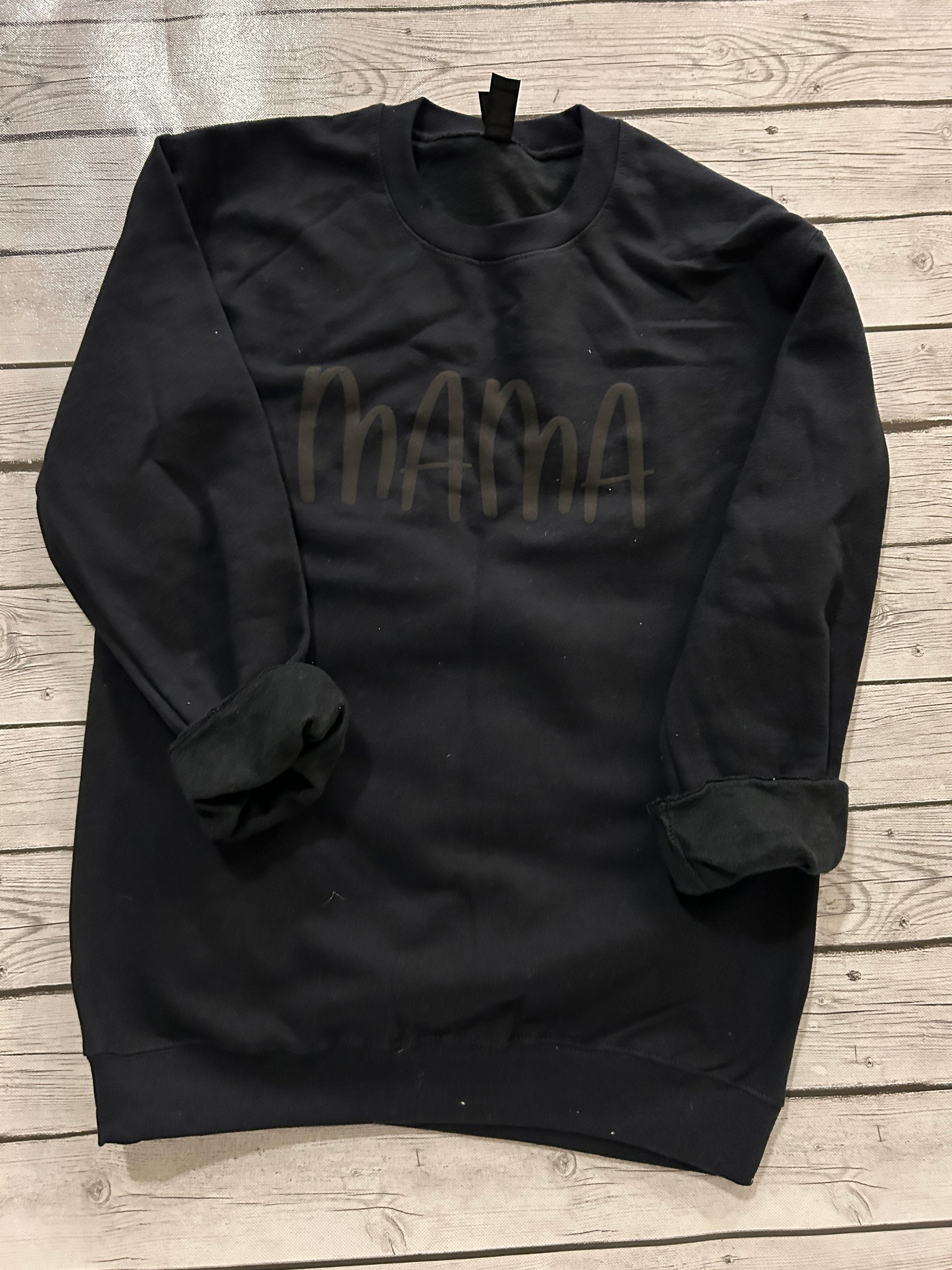 This black on black mama puff sweatshirt is absolutely dreamy. With a subtle pop, you're sure to fall in love.